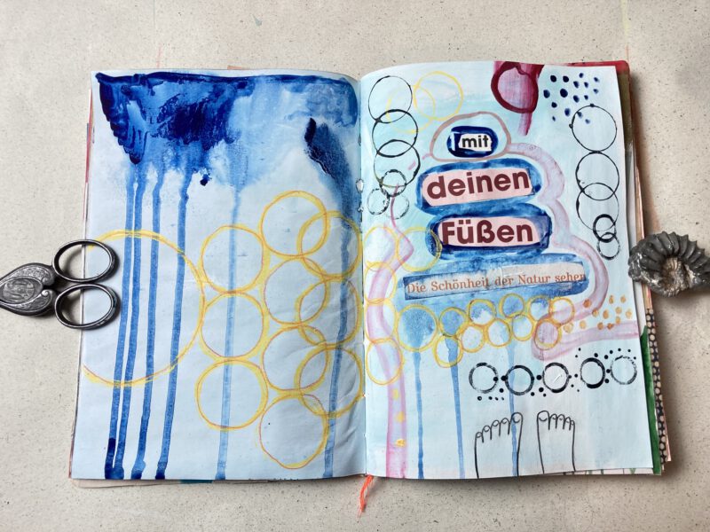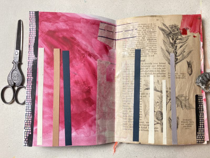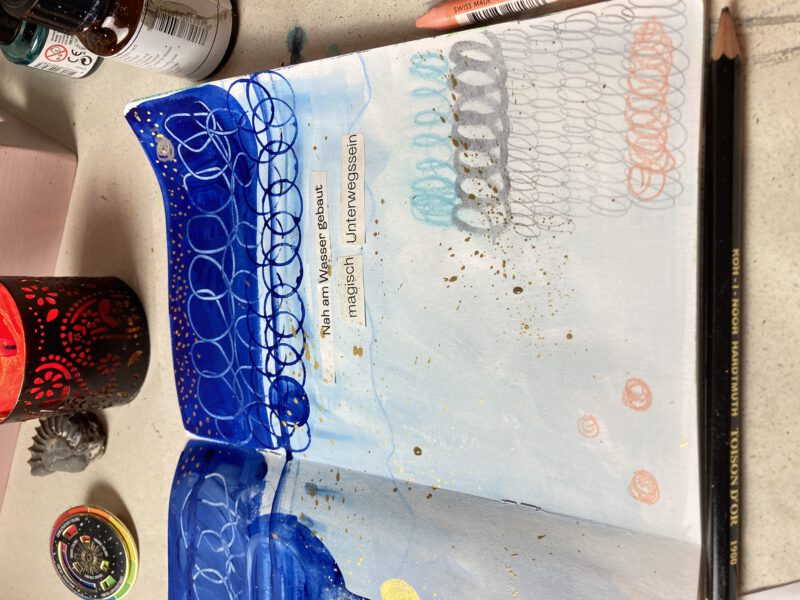 Art Journaling kann auch Kunsttagebuch, verschönertes Skizzenbuch, gestaltetes Heft, Reisetagebuch, Experimentierheft oder Künstler*innenbuch genannt werden.