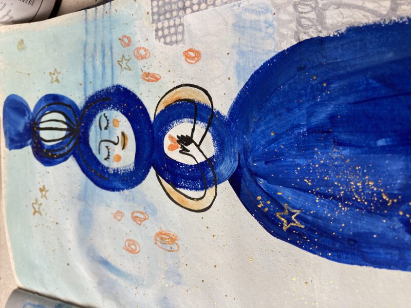 Ab Februar 2023 biete ich regelmäßige Zoom-Workshops zum Thema Art journaling an und bald wird es auch einen Onlinekurs geben. Außerdem gebe ich Kurse vor Ort im Malsalon in Berlin.